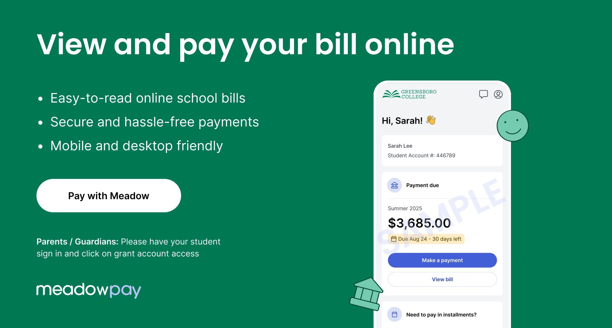 Greensboro College offers a monthly tuition payment plan each semester for our students. Our Tuition Payment Plan is a payment option that divides your remaining balance into manageable monthly payments. We offer payment plans for the following students: